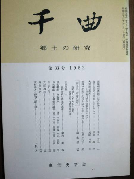 - 千曲―郷土の研究/第33号■東信史学会/1982年/非売品