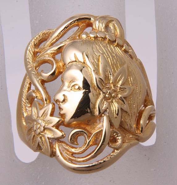 - ke7742◆K18製 女性横顔レリーフリング 12号