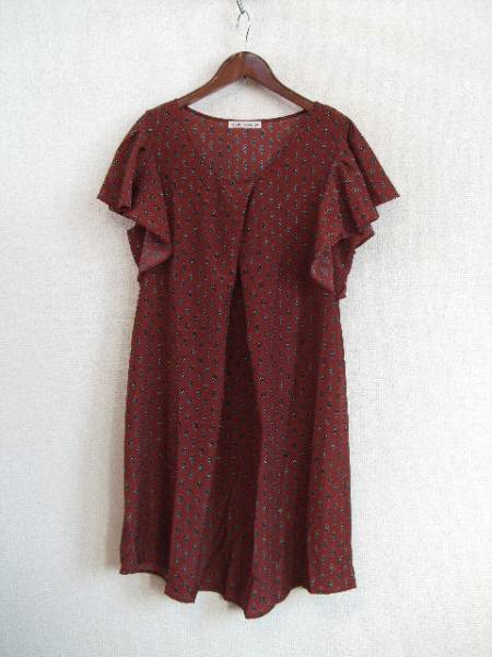 - alittleemotion茶プリント袖フリル半袖ワンピ(USED)12215)