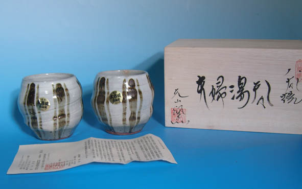 - 大谷焼 湯呑 夫婦湯呑 ペアセット 元山窯 未使用 同梱u可 京焼 十草