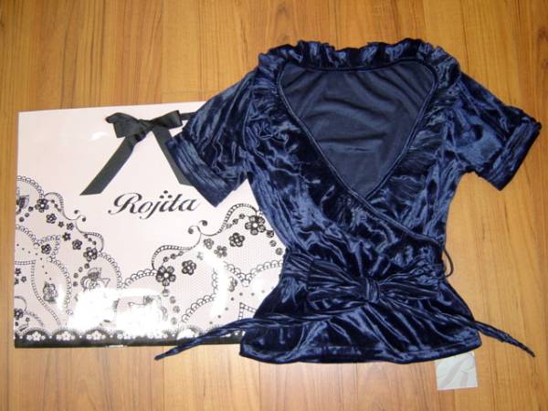 - ◆新品Rojitaロジータ◆フリル&リボン カシュクール ベロア半袖カットソー紺