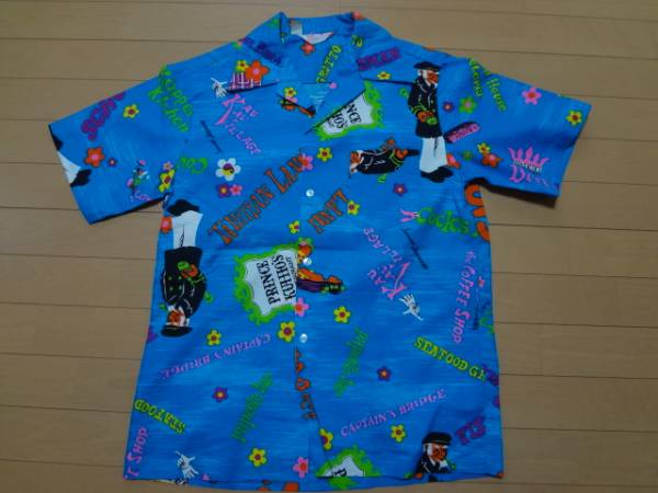 - 1960's アロハシャツ デッドストック ビンテージ ポップアート ハワイアン ブルー 青 コットン prince kuhio's Sears シアーズ