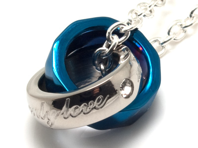 - ★お勧め★肌に優しい★手入れ不要★金属アレルギー&温泉&海水浴ご使用OK★ステンレスペンダント★ ダブルリング&ブルー&ジルコニア★