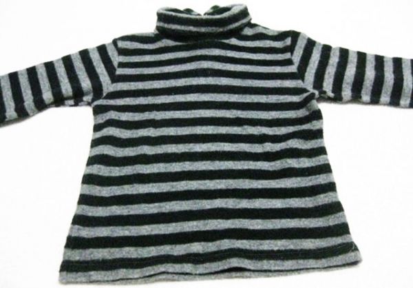- 110㎝ 長袖 ニット風 後ろボタン エリあり ボーダー 黒×グレー