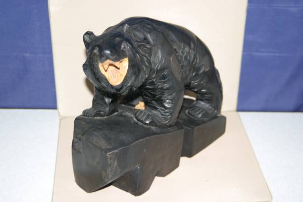 - 木彫り 熊 置物 黒 1976年 北海道 川湯温泉 吠え 約25cm 樫の木