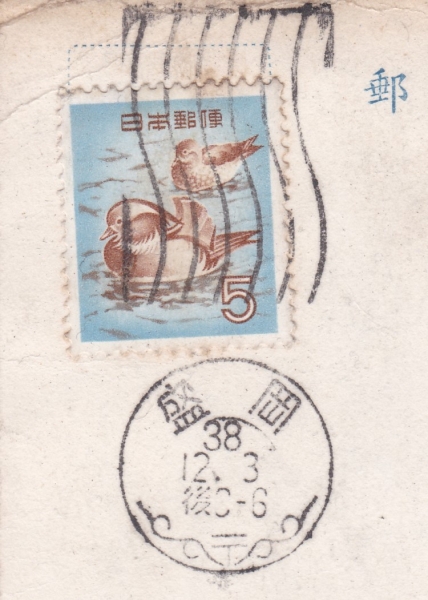 - t2238★唐草機械印/盛岡38.12.3/5円オシドリ