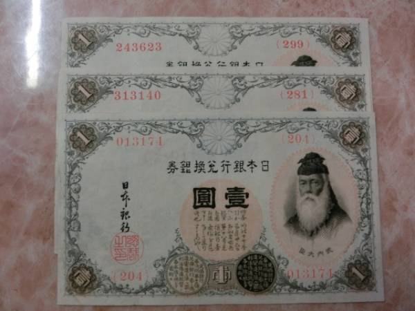 - 200番台 ★ 大正兌換銀行券1円 アラビア数字1円 3枚セット ★ No.7
