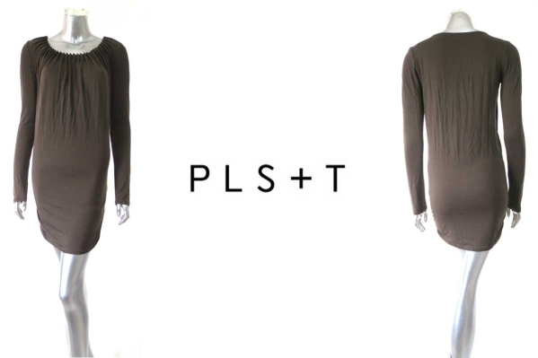 - 二点落札で送料無料! PLS+T プラステ ストレッチ 焦茶 長袖 ワンピース 2 ブラウン