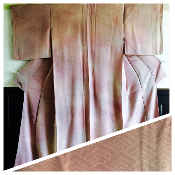 - 【訪問着】正絹着物 身丈151.5cm長春色 連続変わり鱗文様 091506