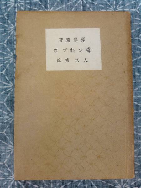 - 毒つれづれ 釋瓢齋 人文書院 昭和13年 初版