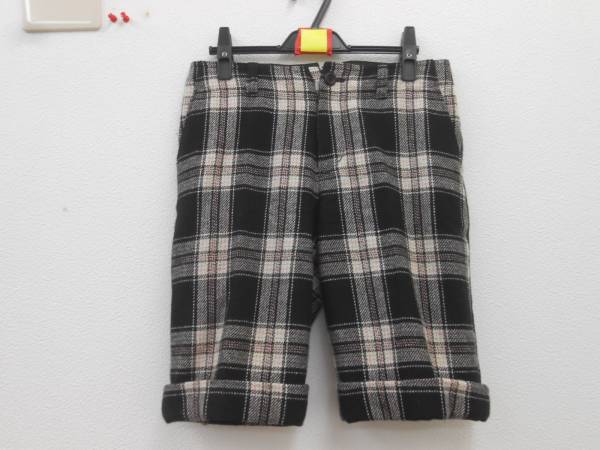 - ●ウール混 チェック ハーフパンツ 黒系 Mサイズ