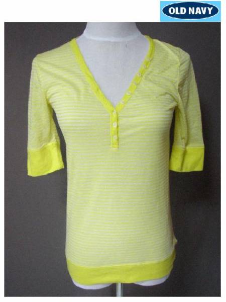 > 即決 USA人気 OldNavy袖5分丈 ボーダー柄ヘンリーネックT US M