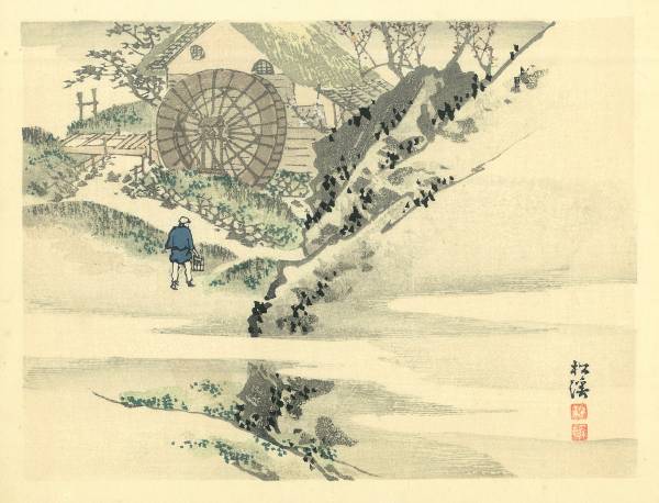 - ●山水画●100年以上前の手摺り木版画3枚セット(額付)送料無料/希少な当時もの!芸艸堂