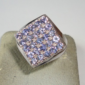 - 送料無料 k14WGブルーホワイト系の石入り印台リングサイズ13.5 used 質屋出品