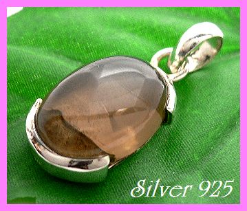 - シルバー925銀の天然石スモーキークォーツ[煙水晶]オーバル ペンダント