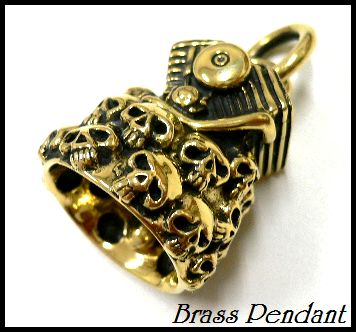 - 真鍮製Brassマルチ スカル 髑髏ベル ブラス ペンダント ラージサイズ美音/キーホルダーやストラップにも◎
