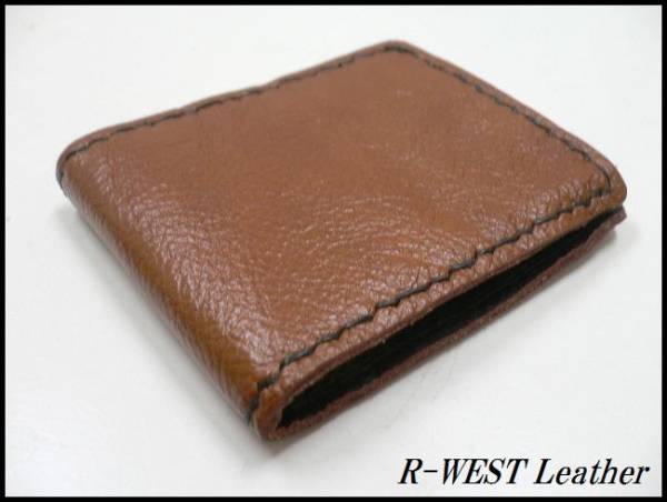- 牛革 無地レザーウォレット/手縫いタイプ/ショート/茶/革財布