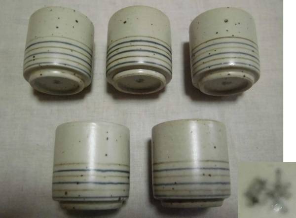 - ★レトロ ライン柄 ぐい呑み お猪口 酒器 径5.7cm 小湯呑み? 5客 酒器 盃 工芸品 陶器 レトロ★