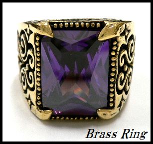 - 真鍮製Brassパープルジルコニア付サイドアラベスク ブラス リング/17号.21号より