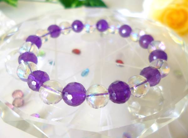 > ★2月の誕生石★高次元チャクラ★愛の守護石★穏やかなる波動★高品質AAA★128面ミラーカット★アメジスト★レインボーオーラ♪