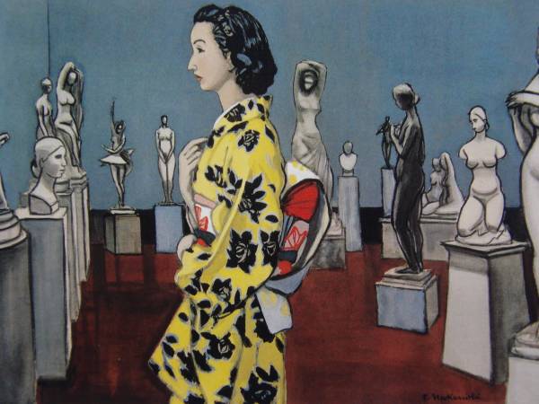 - 中西 利雄、彫刻と女、希少な額装用画集より、美品、新品額装付