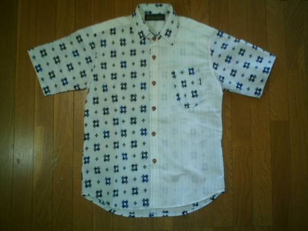 - ☆手作り☆ ハーフかすり柄半袖シャツ 白 L 新品 送無料あり
