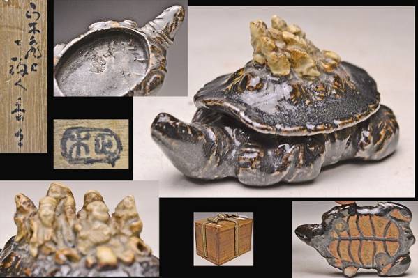 - 正木惣三郎 か ★ 鉄釉亀上七福神香合 ★ 共箱か ★ 希少 ★ 検 平澤九朗 ★