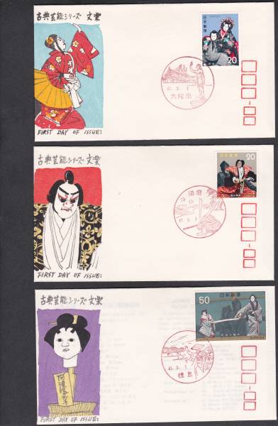 - FDC 1972年 古典芸能シリーズ 第3集 文楽 3通 銀座わたなべ
