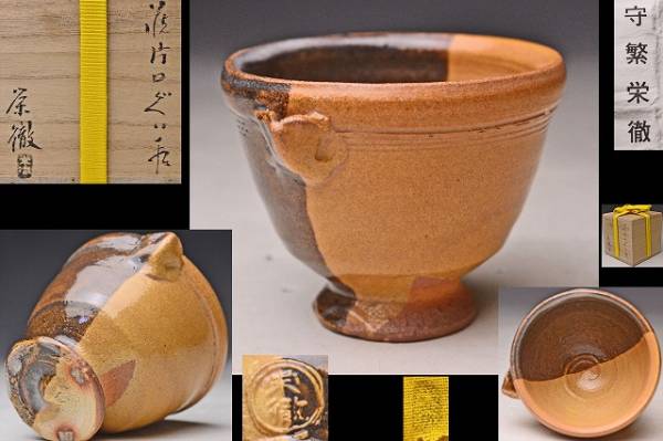 > 守繁栄徹 ★ 萩片口ぐい呑 ★ 共箱共布栞 ★ 珍品 ★ 片身替わり ★ 片口見立て ★ 酒器 盃