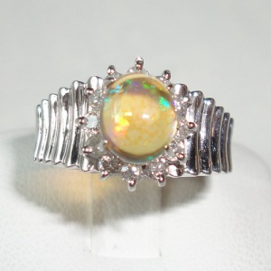 - 送料無料 pt900オパール1.01ダイヤ取り巻き12石リングused質屋出品