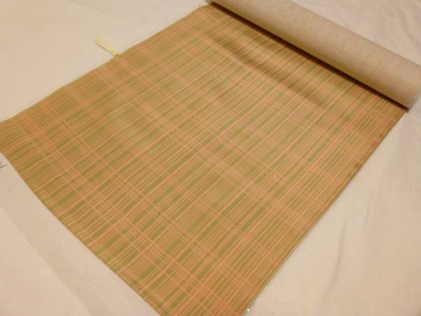 - 新品正絹★長尺羽裏(肩裏・コート裏)★グリーン地に格子柄です