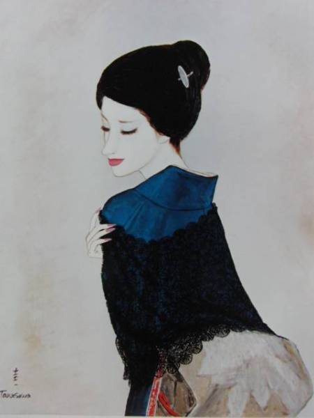 - 高沢 圭一、黒いショール、希少大判画集画、高級額装付、salt