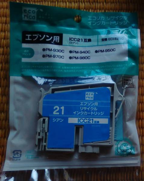 - 【未開封未使用】エコリカ製 エプソンプリンタ用互換インク IC6CL21互換 シアン(青) 250円