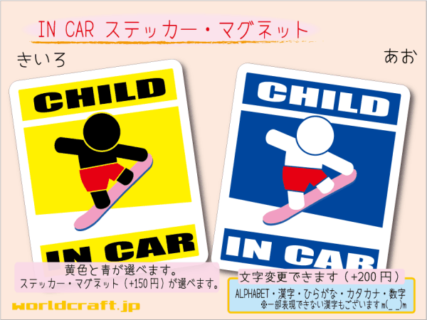 - ■CHILD IN CARステッカースノーボードB桃■子ども乗ってます スノボ ステッカー/マグネット選択可能 (3