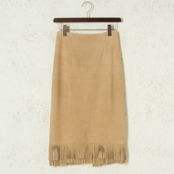 > MACPHEE マカフィー スカート ゴート レザー フリンジ ベージュ 34 w0028-05-011