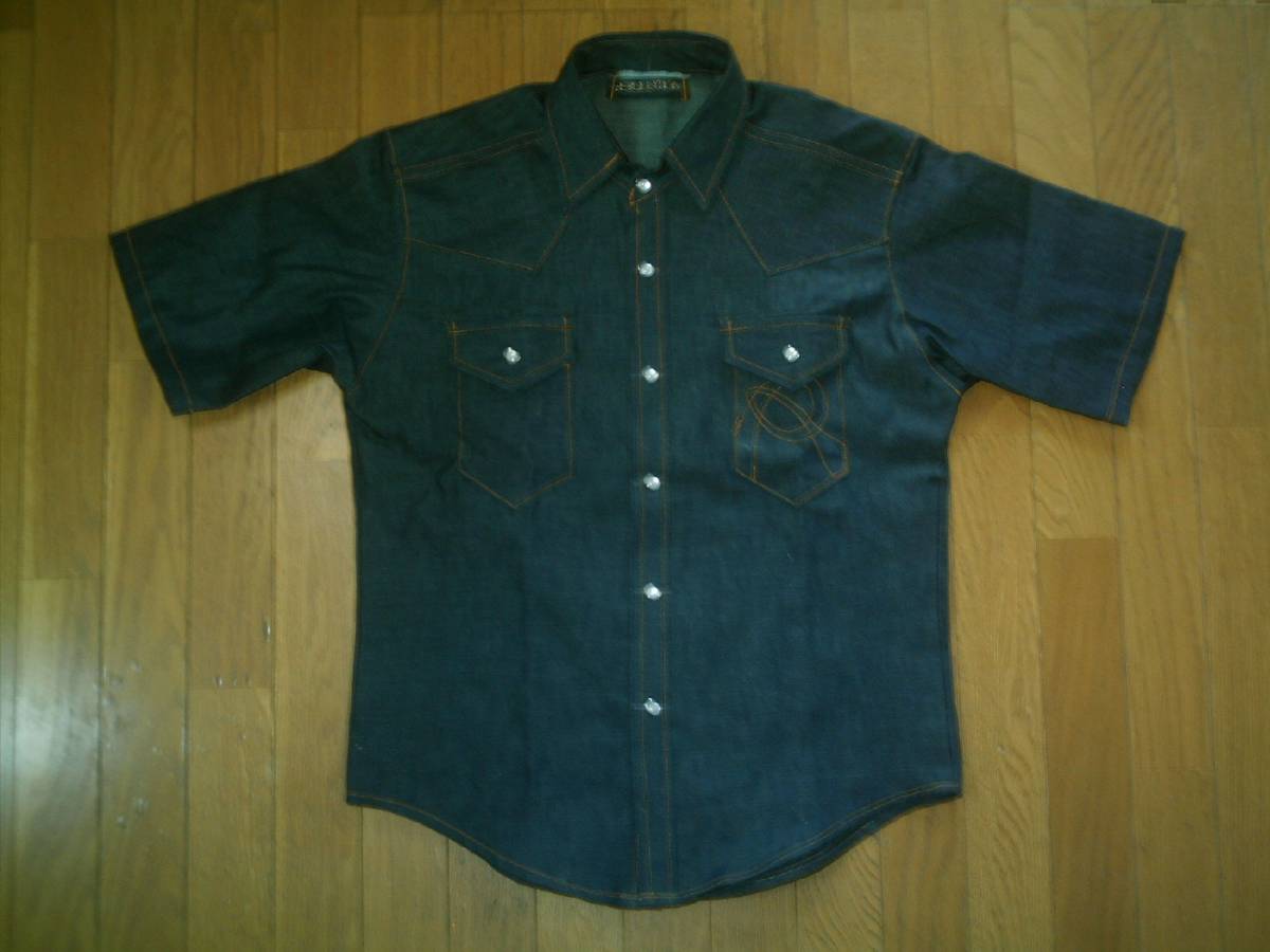 - ☆手作り☆ デニムウエスタン半袖 L 未洗い 新品 送無料あり