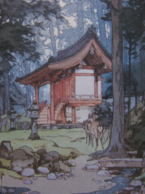 - 吉田博、【深林之宮】、希少画集画、高級新品額・額装付、状態美麗、送料無料