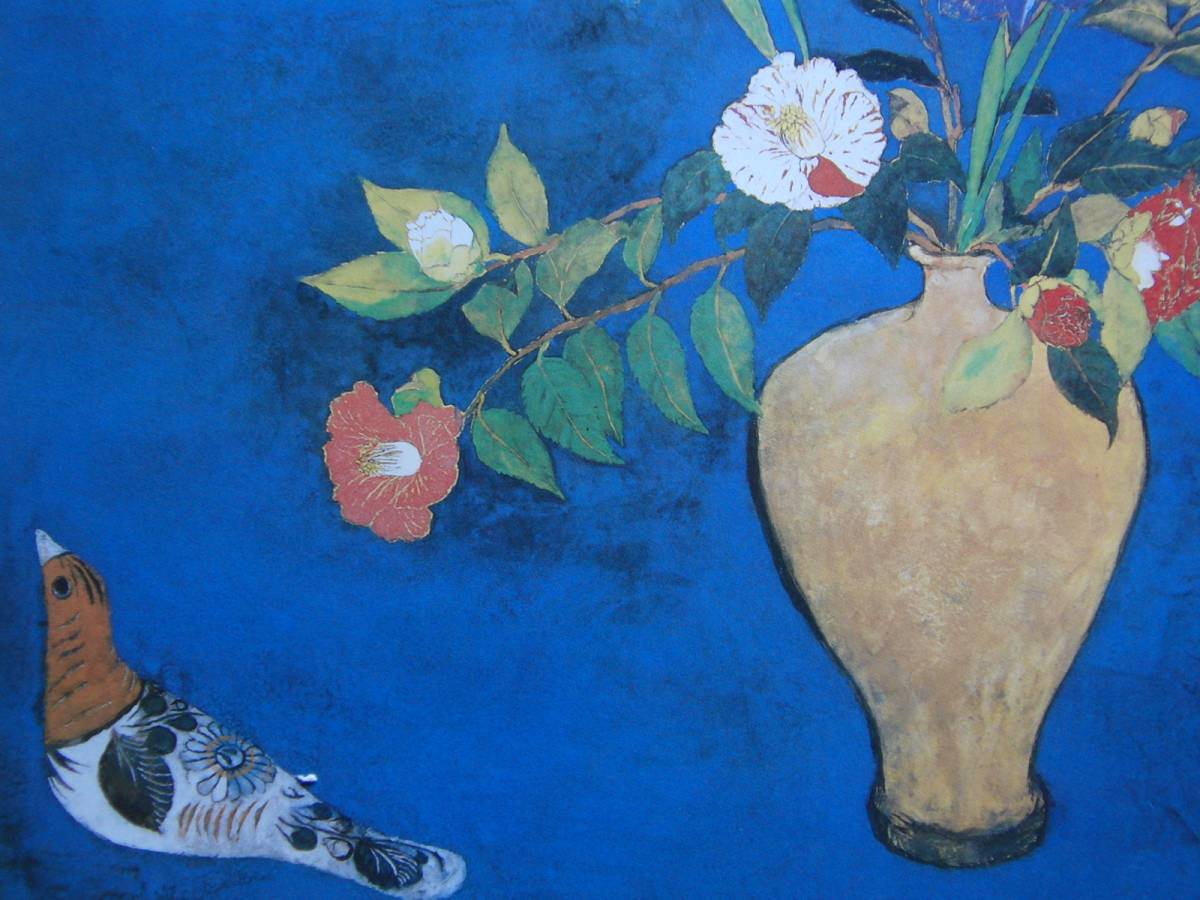 - 松下宜廉、【花】、希少画集・画版画、高級新品額・額装付、状態美麗、日本画家、送料込み