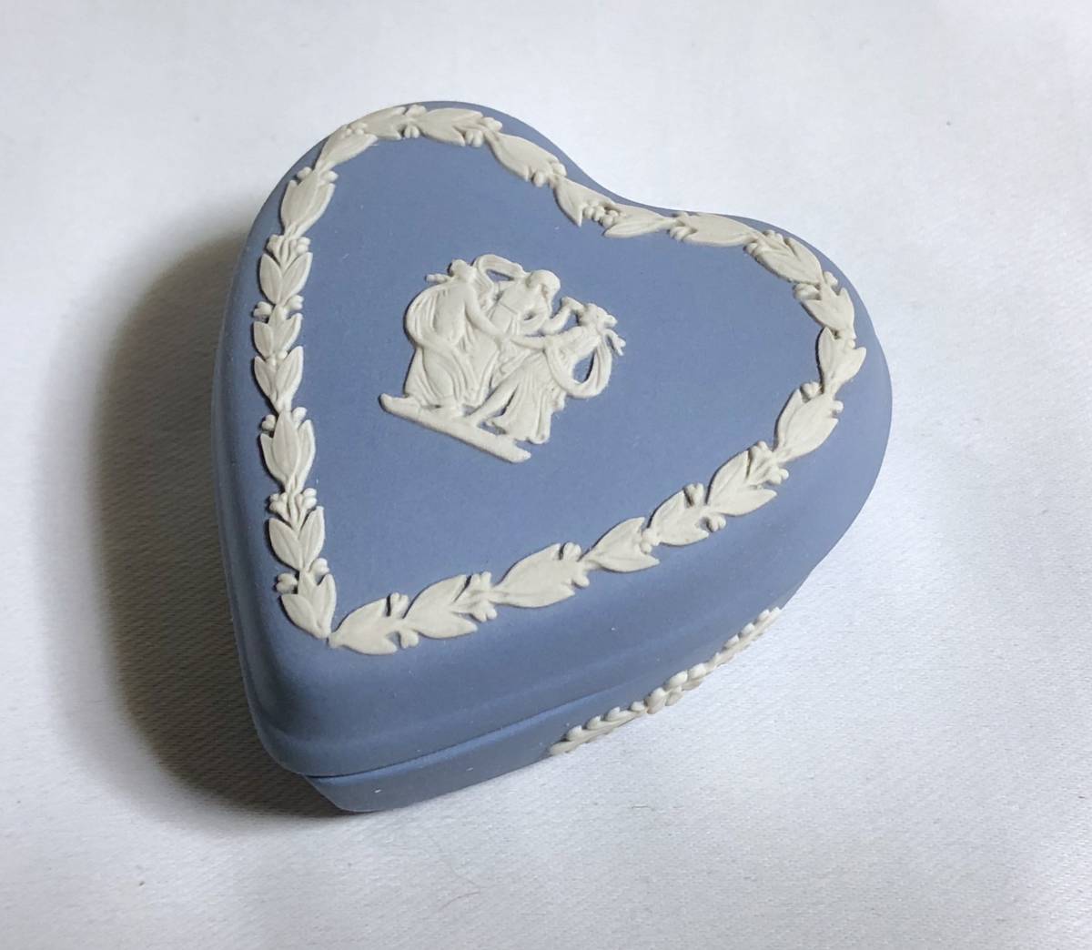> 正規美 Wedgwoodウェッジウッド ジャスパー ハートモチーフ 小物入れ ホワイト×ブルー系 ヴィンテージ陶器 アクセサリー ジュエリーBOX★