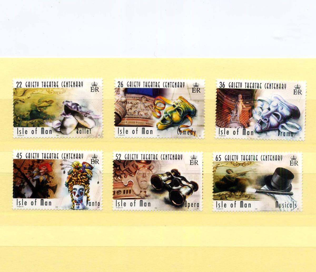 - 英領 マン島 ISLE of MAN 2000年 ガイエッティー シアター 未使用 MNH 切手 6枚 綺麗 送料無料 ◆w-351