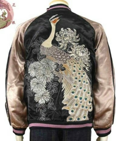 - 花旅楽団/菊花×白孔雀/スカジャン/XL/ssj-011/サトリ