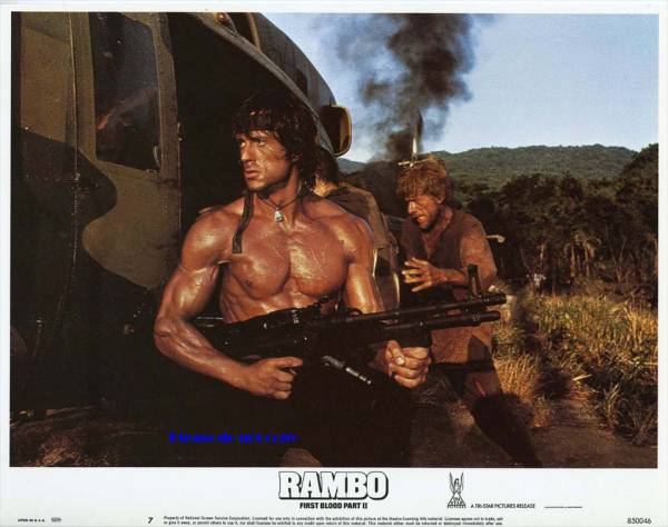 - 1985年 映画 ランボー2/怒りの脱出 シルヴェスター・スタローン US語 ロビーカード3枚付き