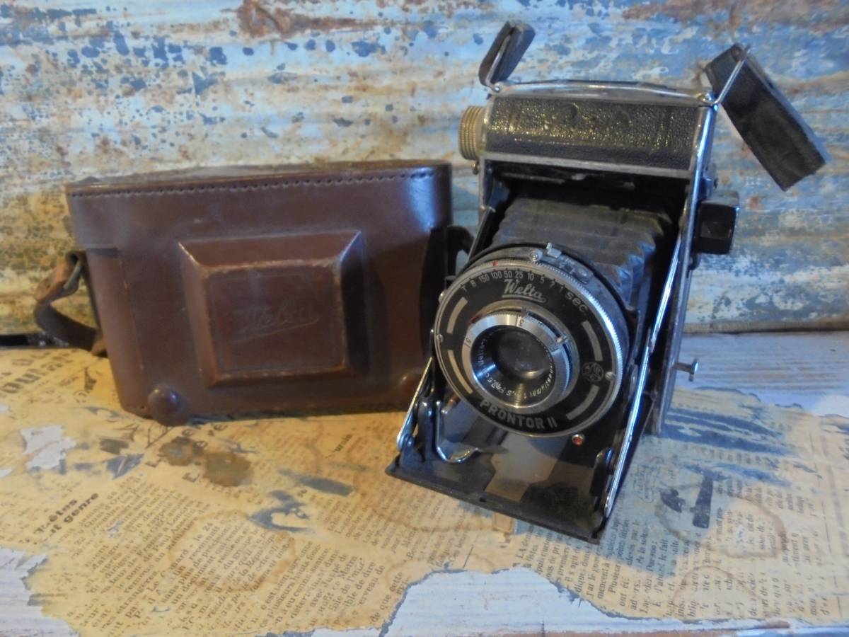 - 【古いカメラPRONTORⅡ】welta蛇腹アコーディオンレザーケース古道具アンティークシャビー玩具文具骨董フィルム昭和レトロインテリア