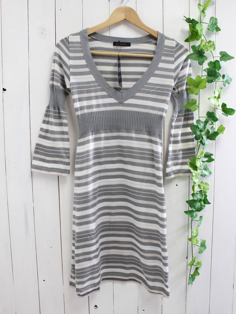 > 新品*b・r・u・s・h ブラッシュ brush*マルチボーダー 深Vネックニットワンピース(38)定価17,000円