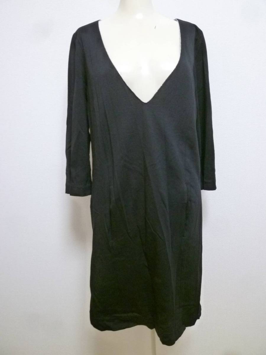 > MICHEL KLEIN/ミッシェルクラン♪黒ボールチェーンネック深Vネックシンプルワンピース38/結婚式フォーマルブラック膝丈イトキン♪215