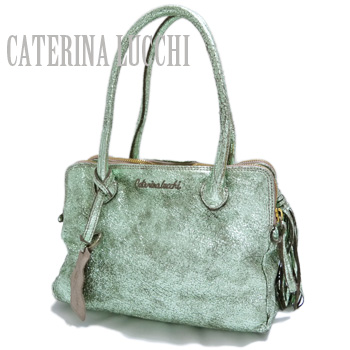 - 新品CATERINA LUCCHI伊製メタリックヴィンテージレザーバッグ緑★