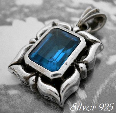 - シルバー925銀のブルージルコニア[レクタングルカット]付 ペンダント/S&A silver