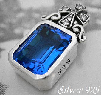 - シルバー925銀のブルージルコニア[レクタングルカット]十字架ジルコニア付ペンダント/S&A silver