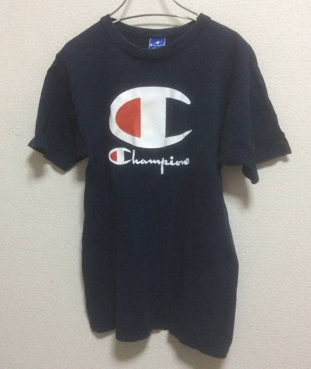 > Champion チャンピオン ビッグロゴ Tシャツ 半袖 トップス USA製 ネイビー M アメカジ