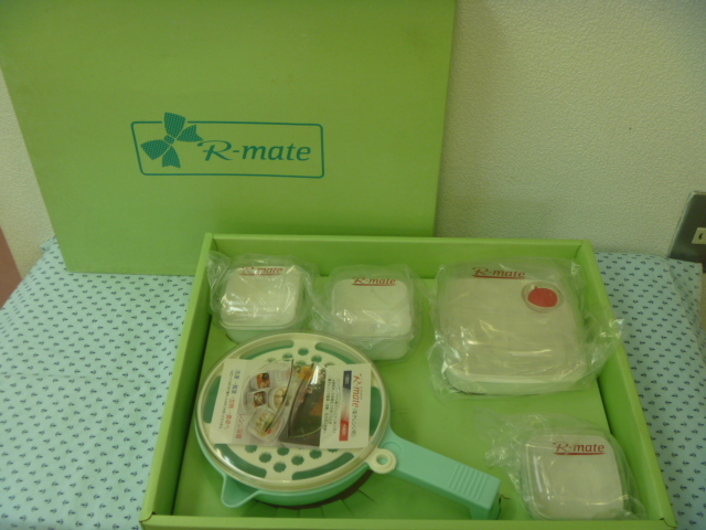 > ●〔R-mate〕【レンジメイト&ラウンドスライサー☆5点セット】・正方形 レンジタッパー(小③),(大①すのこ付)・円形 蓋付 おろし器